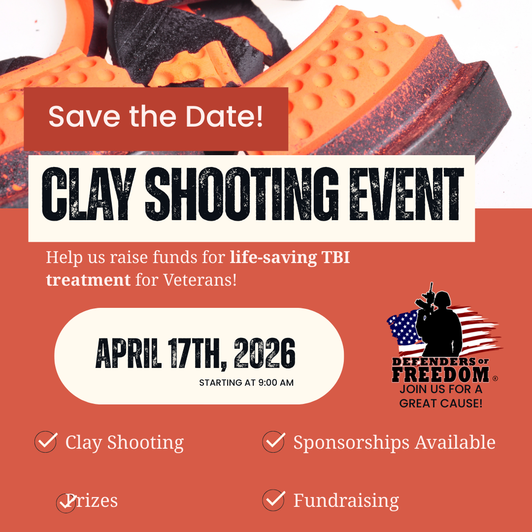 Join us at Fossil Pointe in Decatur, TX for an exciting Clay Shoot benefiting Post-9/11 Veterans. Proceeds from this event will provide life-changing treatment for Veterans suffering from traumatic brain injury (TBI).